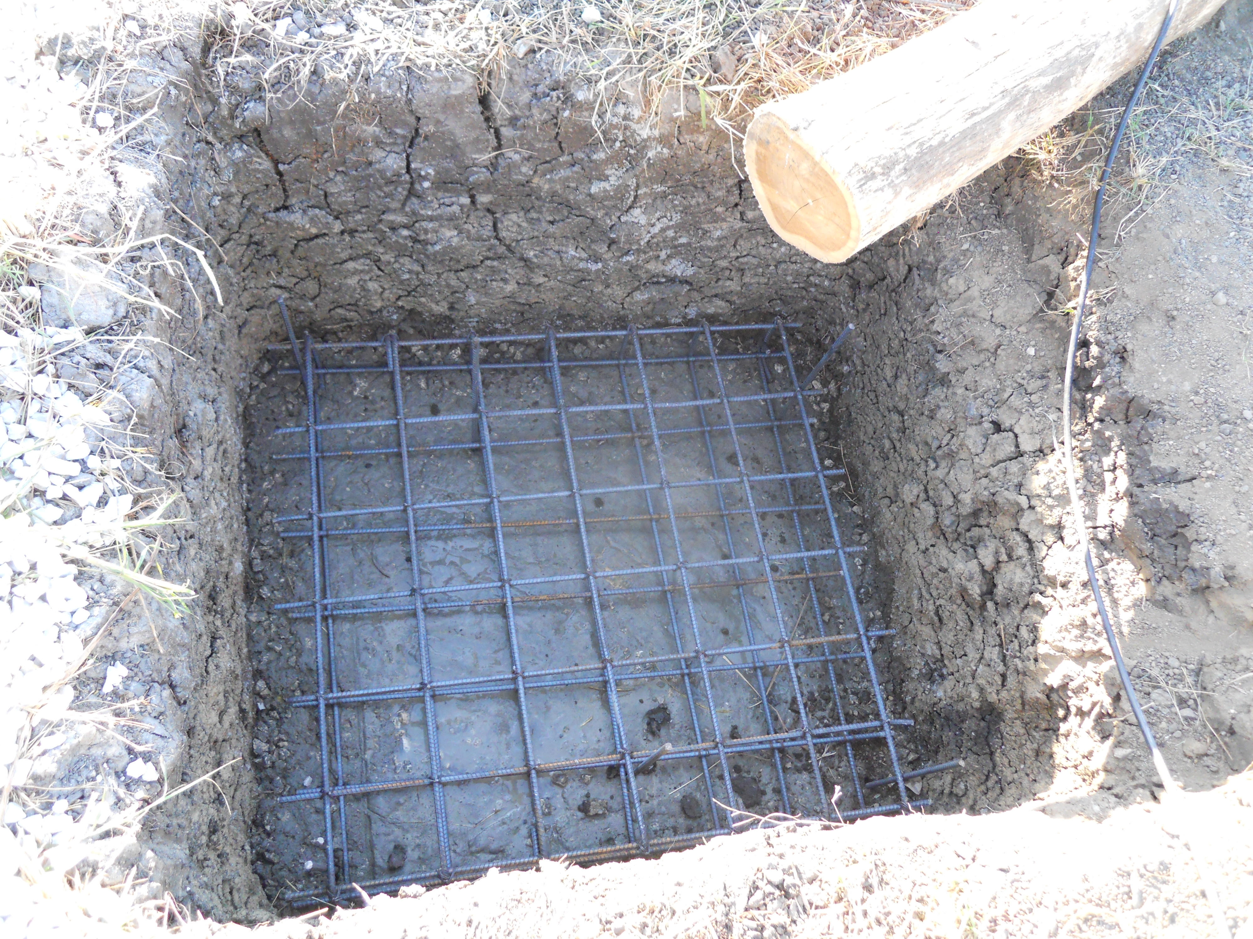 After that, we poured a bit of concrete and then inserted the metal cages for reinforcement. This is what the rebar frames looked like before we hid them with more concrete to distribute the load of the teak poles.