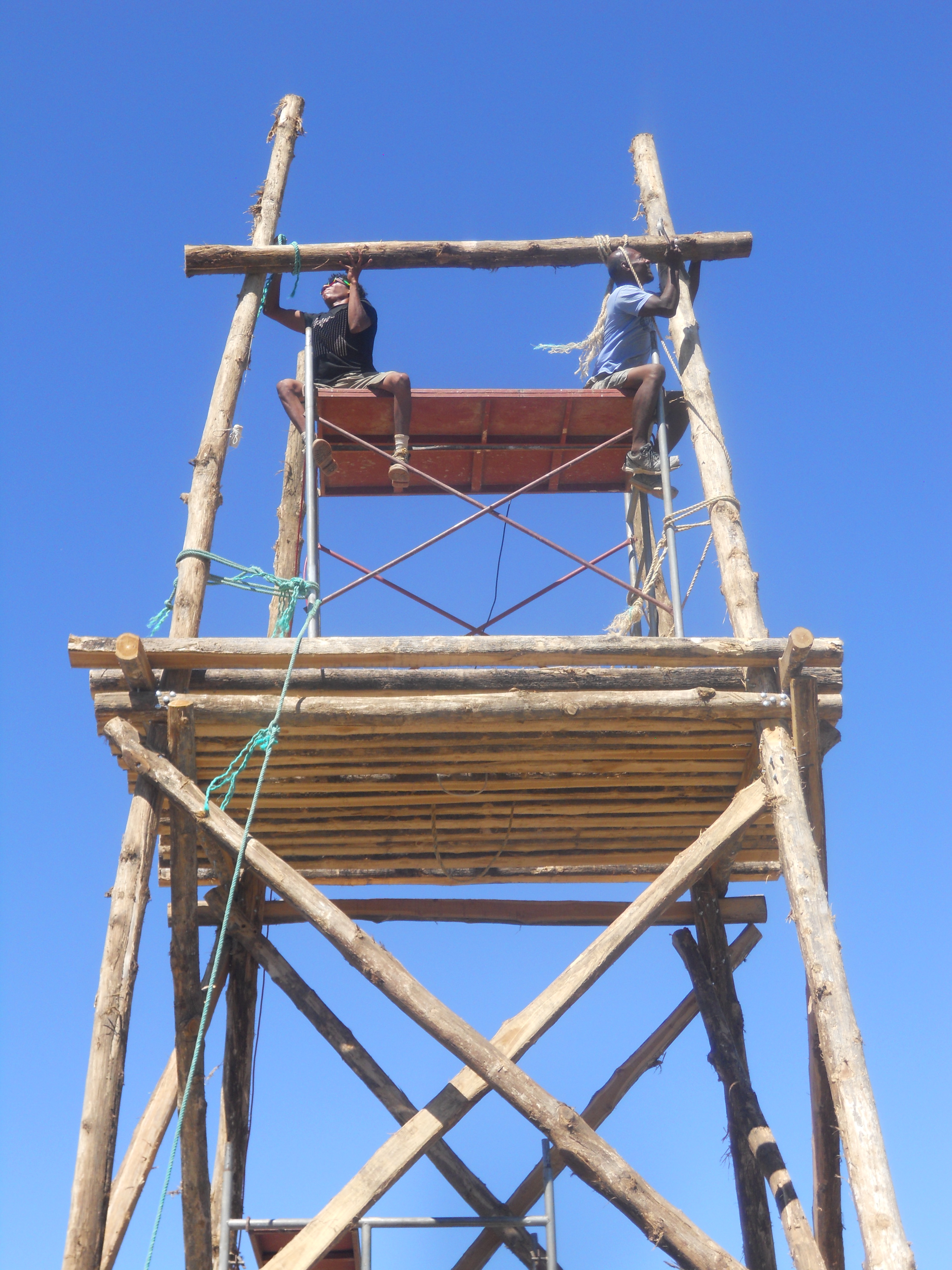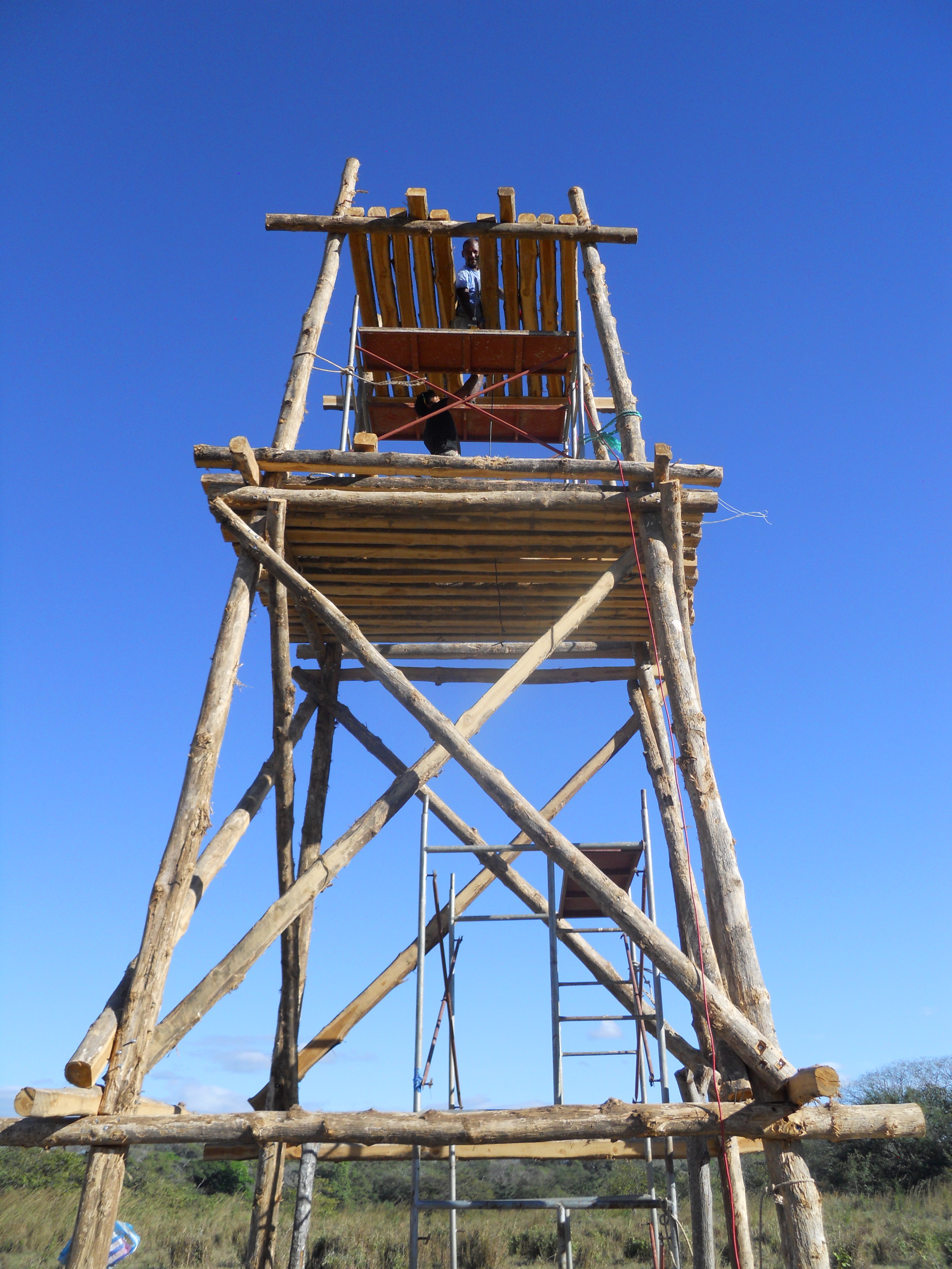 With the scaffolding well secured to the tower, Seco & Jesus began installing the top level.