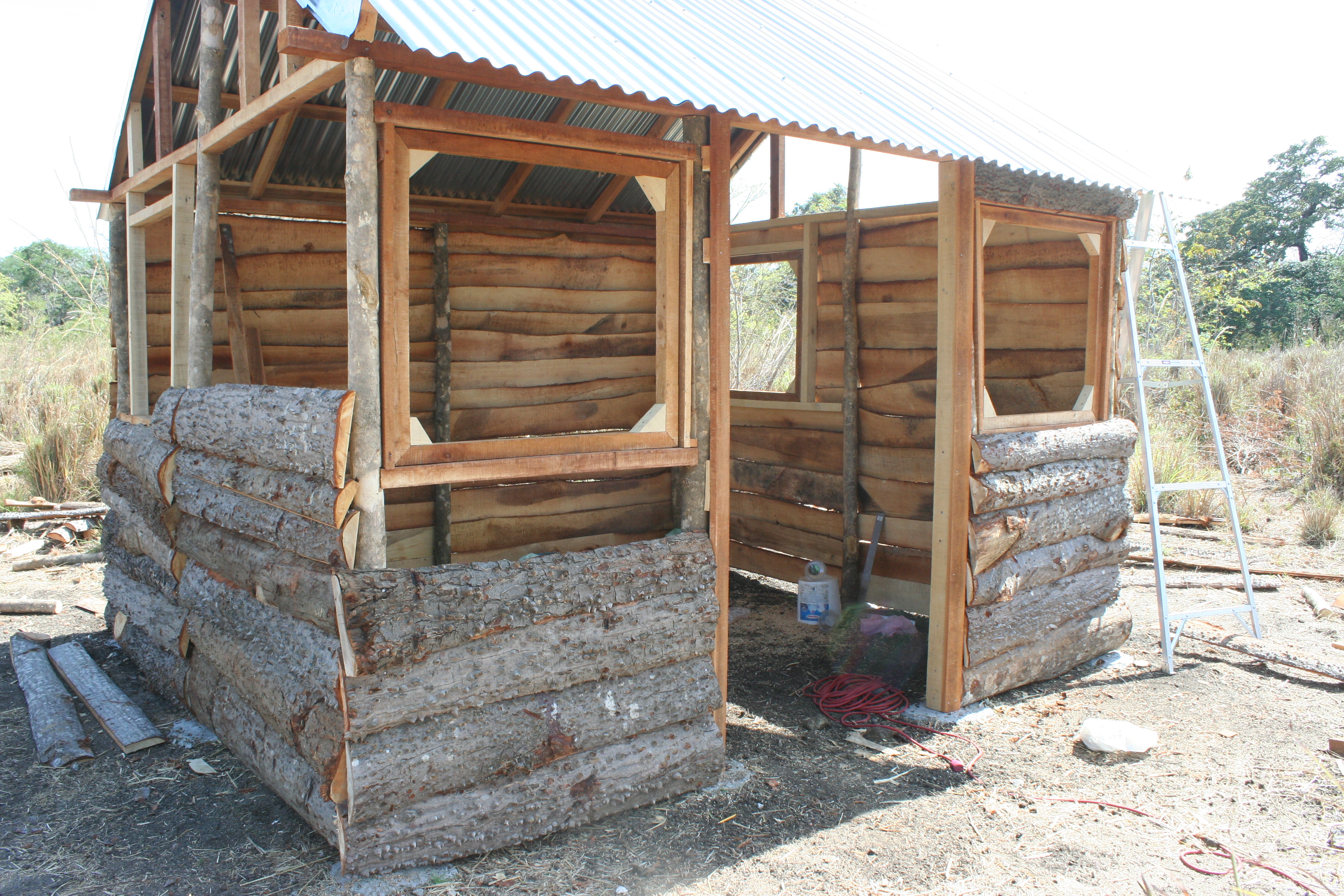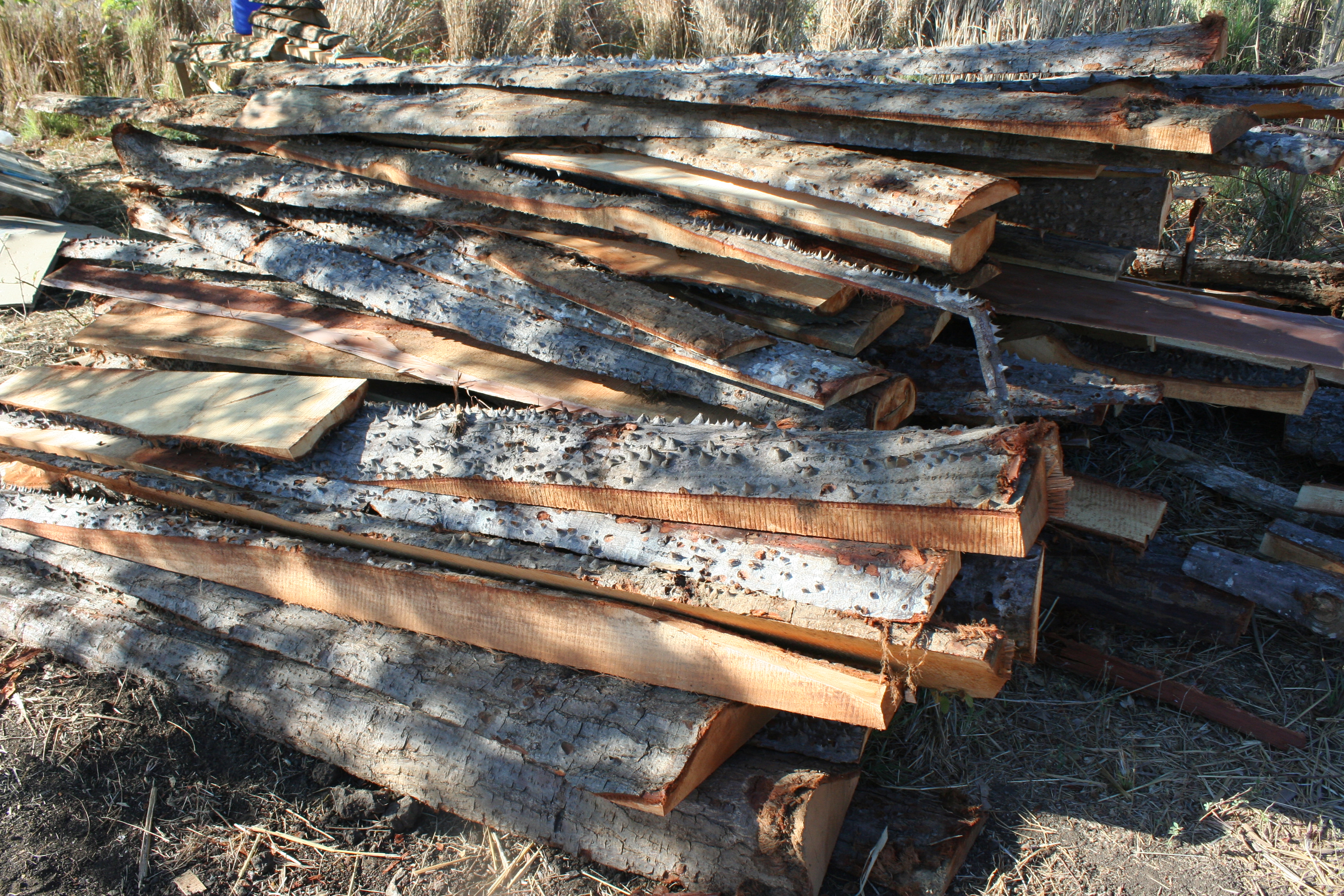To sheath it, I opted to use a most unusual material–the discarded bark-covered end cuts of a densely thorned tree known as “pochote”, a waste product from a local saw mill. We spent hours just removing and transporting the best pieces from a huge pile of scrap wood. Other than the time and gas money to bring it, this big pile of salvaged wood cost NOTHING!