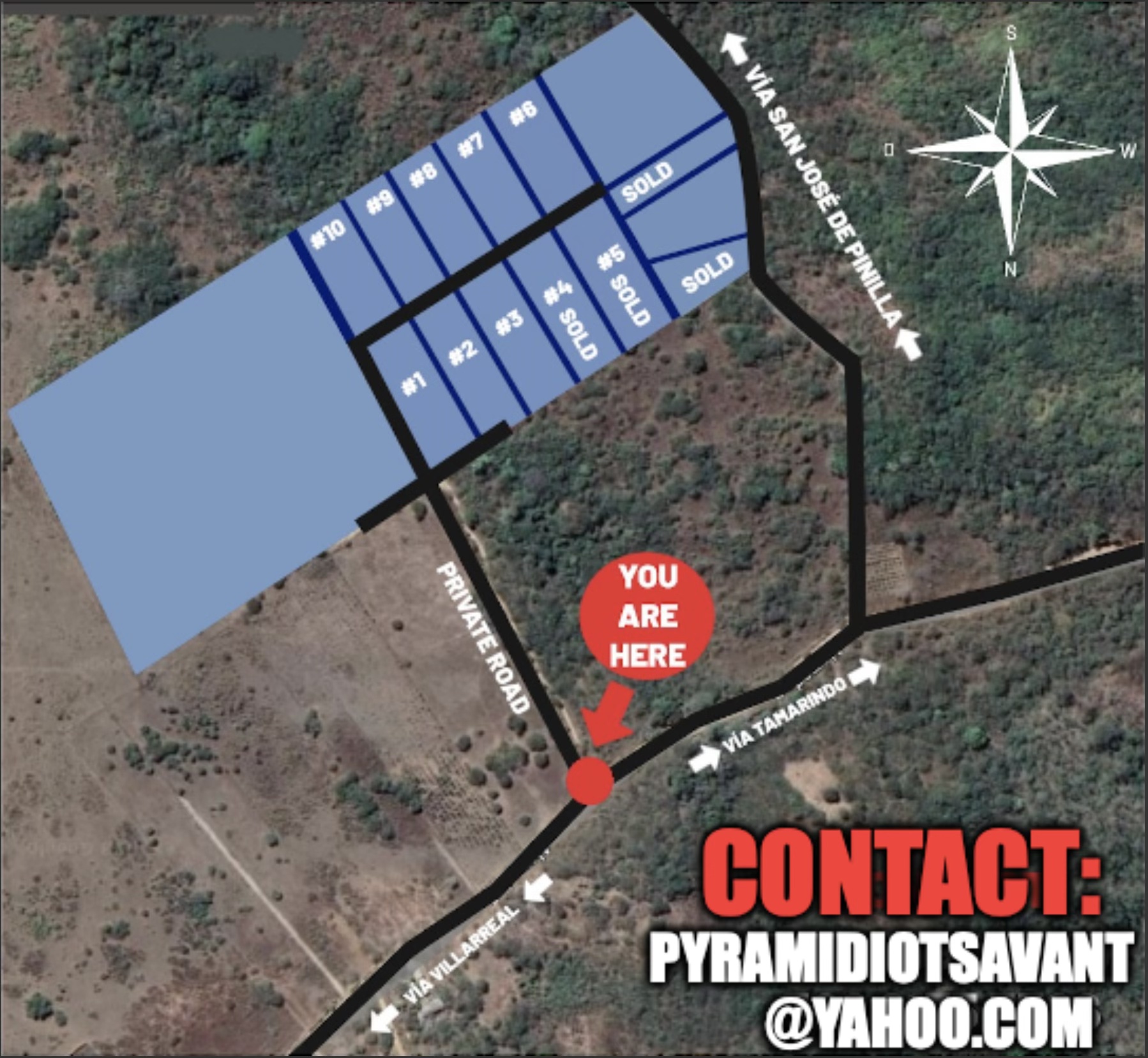 Most lots have been subdivided into 5000-meter (~1.25-acre) parcels starting at $150,000 USD, which happens to be the minimum amount that one would have to invest to automatically qualify them (and their family) to obtain an “Investor Visa” for legal residency. The prices will go up once they are hooked up with electricity, water, and fiber optic cables but, for now, the option remains for every buyer to decide for themselves whether or not they wish to remain off-the-grid. The electric lines are already fairly close and one only has to dig / drill less than 10-meters (~33 feet) to find water if one prefers not to use the chlorinated water provided by the water company. So why not invest your paper money now before it loses all its value and buy some good fertile land while you still can?