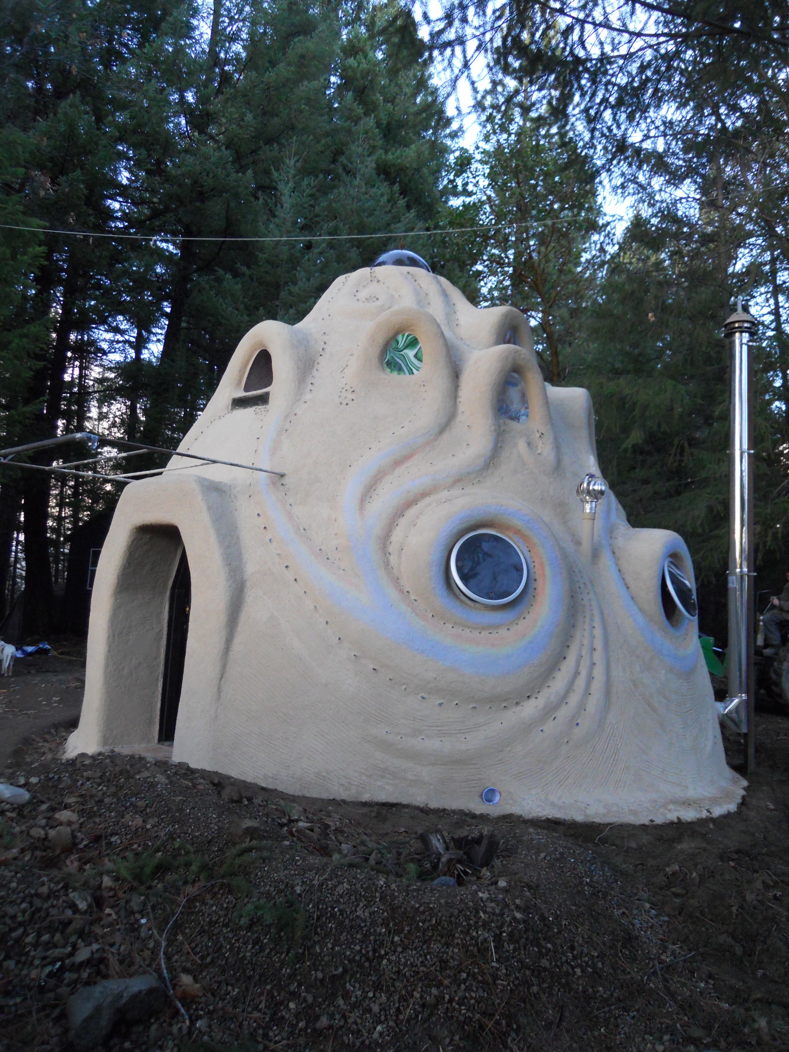 Though our culture tends to view it merely as dirt, earth is an extraordinary substance that happens to be the most abundant, inexpensive, and ecological building material in the world–a strong, durable, and exceedingly versatile, sculptable, renewable, recyclable, biodegradable, non-allergenic, energy-efficient material that insulates thermally, acoustically, electrically, and electromagnetically, keeping us safe and comfortable in all climates. It’s resistant to fires, earthquakes, lightning, tempests, vermin, termites & other bugs, bullets, mildew, rust, rot, salts, acid rain, and other plagues. It can be fashioned into any shape, given any texture, and colored in a rainbow of hues. It doesn’t require much specialized training or skills, nor expensive, dangerous, and noisy power tools, therefore no noise pollution to disturb the serenity of neighbors and wildlife. Building with it is actually safe, simple, therapeutic, and fun–like building a sandcastle but way more permanent. The material is so non-hazardous, even kids could work with it barefoot without any protective equipment. It’s so nontoxic that, if you smeared it on your skin or ate it, it would actually help detoxify your body and improve your health. [Disclaimer-That statement has not been approved by the FDA but consuming food-grade clay and fiber is well known to have health benefits.] Though building supply stores don’t sell this incredibly useful yet way under-appreciated and under-utilized (except by animals that know to use it instinctually) building material, it’s easy to find everywhere and absolutely free of charge. Just look down, our planet was named after it! Can you imagine living in an eco-community where all of the homes are built primarily with the earth found onsite and are as unique and colorful as the individuals living within?