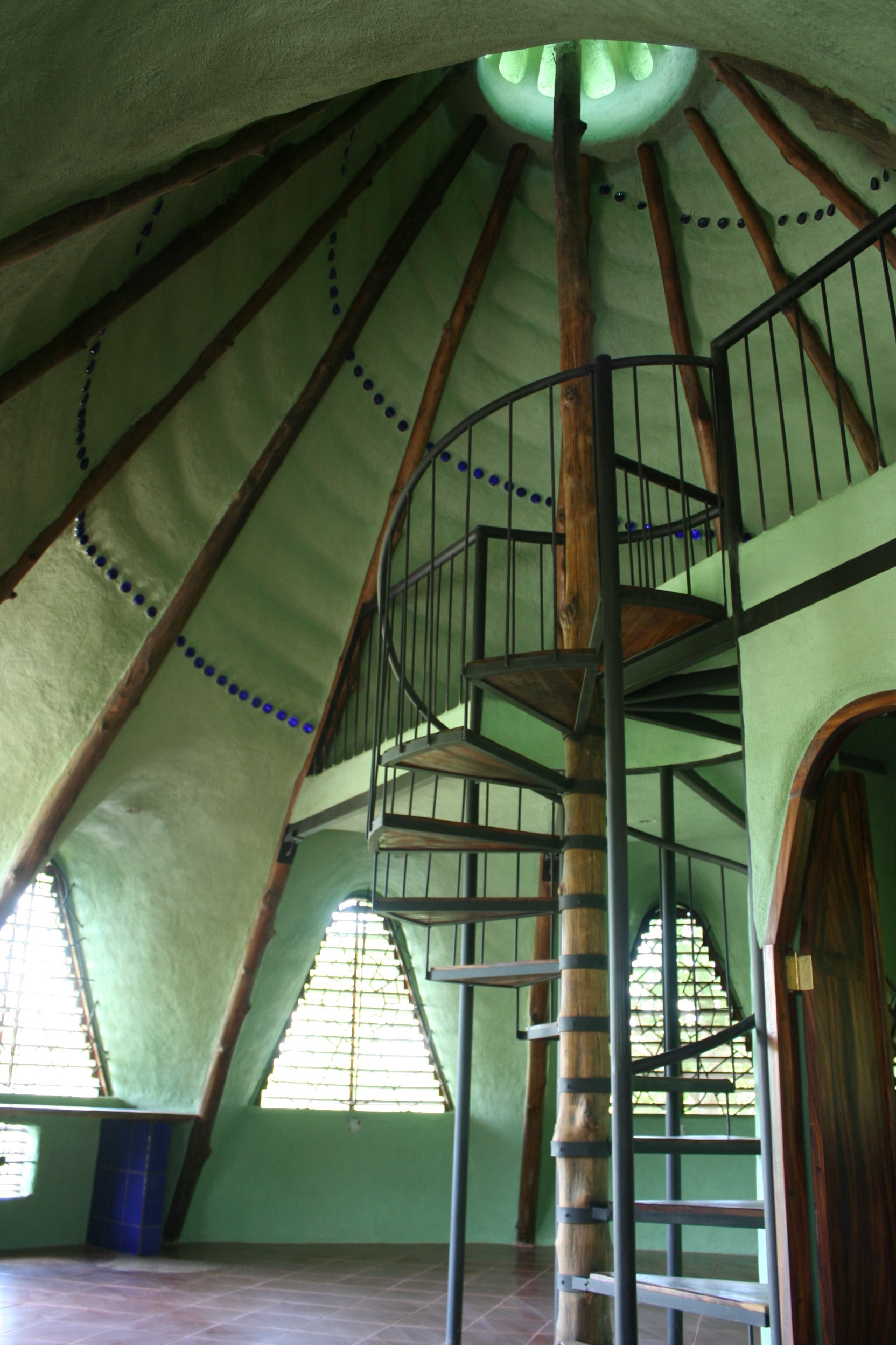 Most local buildings are constructed with cinderblock walls and uninsulated metal roofs that have a high carbon footprint and function like solar ovens that overheat during the day and hold the heat all through the night resulting in either miserably hot dwellings or an over-dependence on air conditioning, which not only costs a lot for electricity but overtaxes the electrical grid resulting in frequent power outages, and emits ozone-depleting freon / HCFCs / CFCs that are unhealthy to breathe and unhealthy for the environment. Concrete, cinder blocks, steel & other dense heat-retaining materials have become the norm despite the expense, the excessive amount of energy and pollution to mine, produce, and transport, and the fact that they are completely inappropriate for a tropical climate. The other main alternative is wood, which is more charming but also expensive, contributes to massive deforestation, is susceptible to fire (especially in Guanacaste), serves as food & housing for insects, and is prone / subject to rot, cracking, etc. Besides being very uncomfortable to live in, these typically ugly, inefficient, overpriced, debt-creating, impersonal, boring, box-like dwellings are directly responsible for impoverishing the people, creating a shortage of affordable housing, as well as a visual blight on the landscape. Though labor costs are very cheap in Costa Rica, most store-bought building materials are expensive due to taxes, transportation costs, fees to import them, high demand yet limited supply, etc., therefore the less building supplies one has to buy, the better.